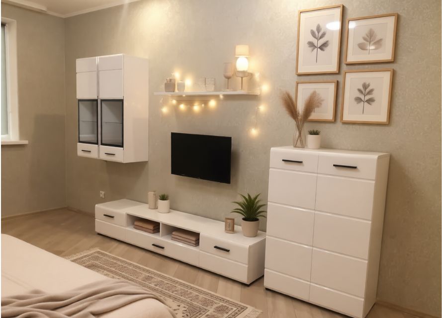 - вместительная и лаконичная ТВ тумба;