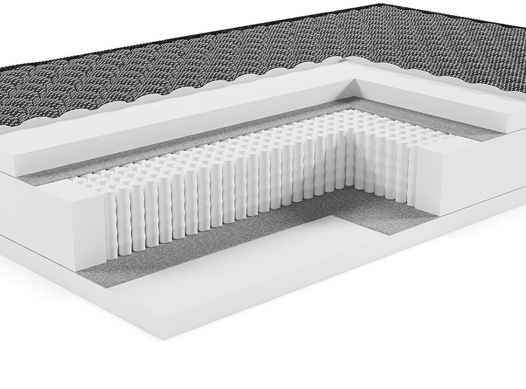 Полипропиленовая сетка Материал потрясающей прочности. Используется как дополнительный слой, придающий жесткость и изолирующий пружинный блок от настилочных слоев. Делает матрас ещё прочнее и долговечнее